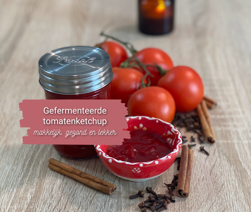 Goede tomatenketchup bevat veel - opneembare - lycopeen. Lycopeen is de kleurstof die tomaten rood maakt én een zeer belangrijke antioxidant. En als je de ketchup fermenteert wordt deze ook nog eens pro biotisch, dus goed voor je darmen.